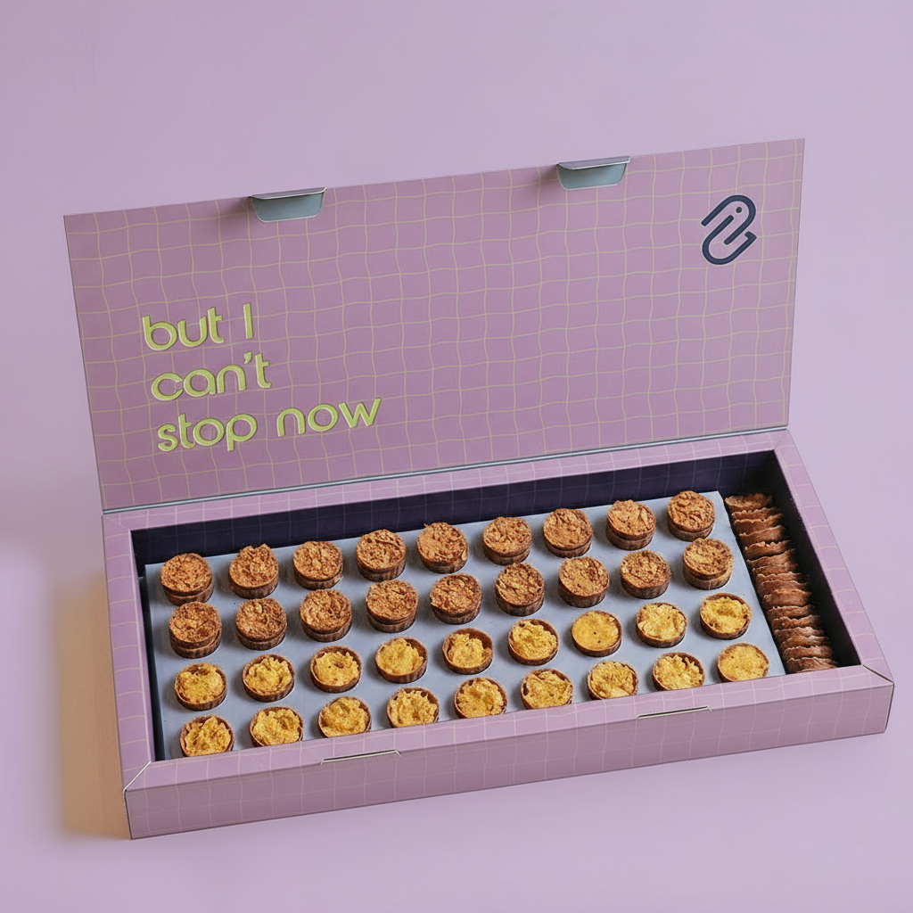 36 Finest French chocolate filled with fresh saffron, Pistachio Kunafa and a base of caramelized cookies. On top of it, a chocolate button covered with crunchy flakes.